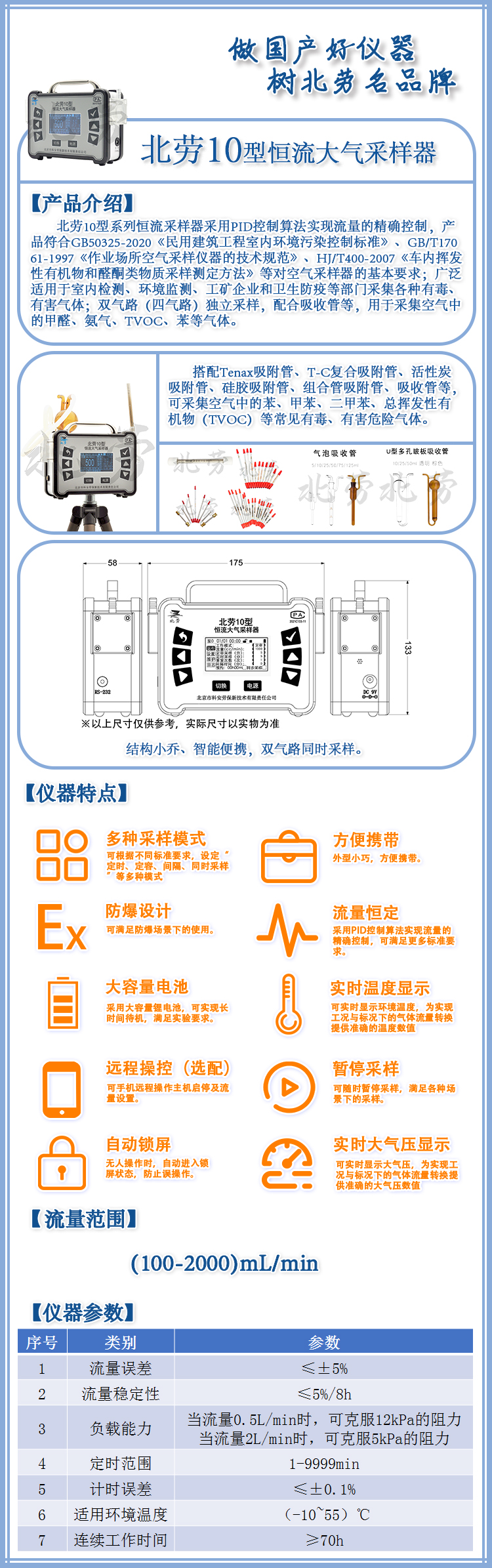 產(chǎn)品描述:北勞10型 系列恒流采樣器采用PID控制算法實(shí)現(xiàn)流量的精確控制,產(chǎn)61-1997《作業(yè)場(chǎng)所空氣采樣儀器的技術(shù)規(guī)范》、HJ/T400-2007《車內(nèi)揮發(fā)61-1997《作業(yè)場(chǎng)所空氣采樣儀器的技術(shù)規(guī)范》、HJ/T400-2007《車內(nèi)揮發(fā)性有機(jī)物和醛酮類物質(zhì)采樣測(cè)定方法》等對(duì)空氣采樣器的基本要求......