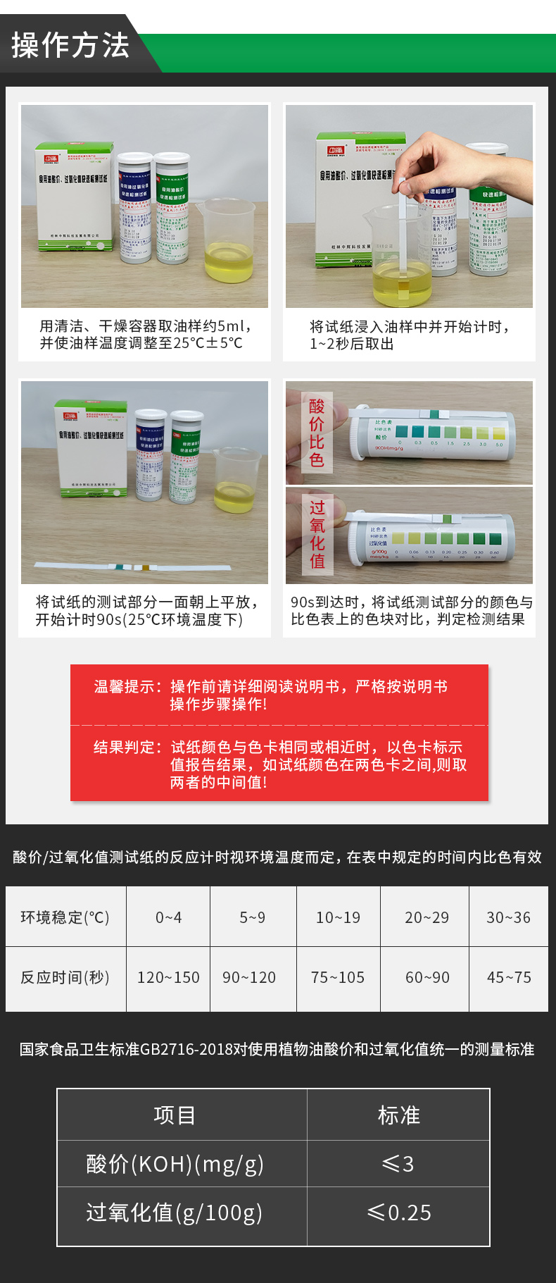 產(chǎn)品名稱:食用油酸價過氧化值快速檢測試紙 檢測食用油品質(zhì)