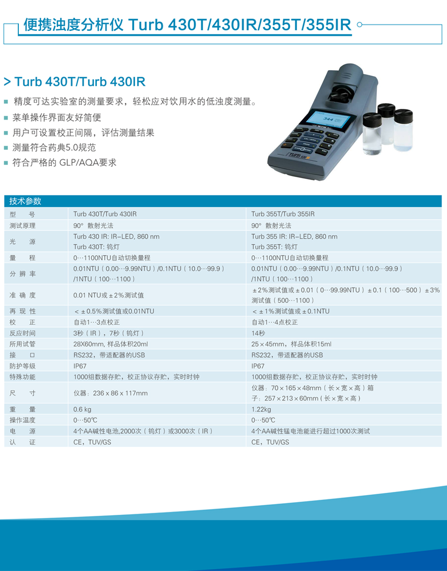 ◆ Turb 430IR符合DIN 27027/ISO 7027標準