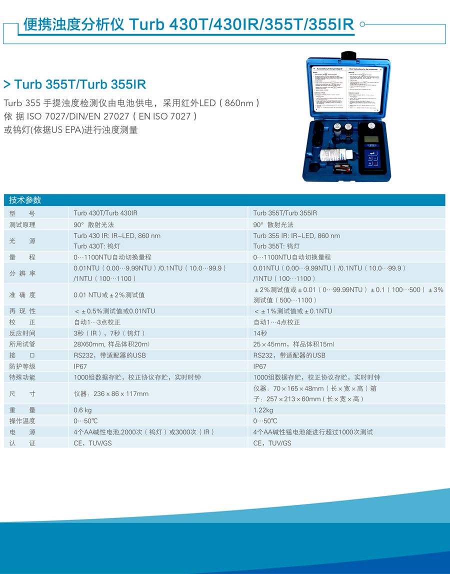 ◆ Turb 355IR符合DIN 27027/ISO 7027標準