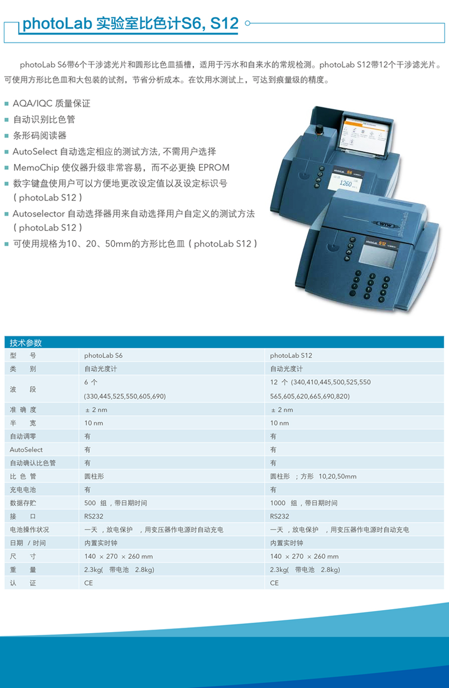德國WTW photoLab S6/12 濾色光度計產(chǎn)品簡介