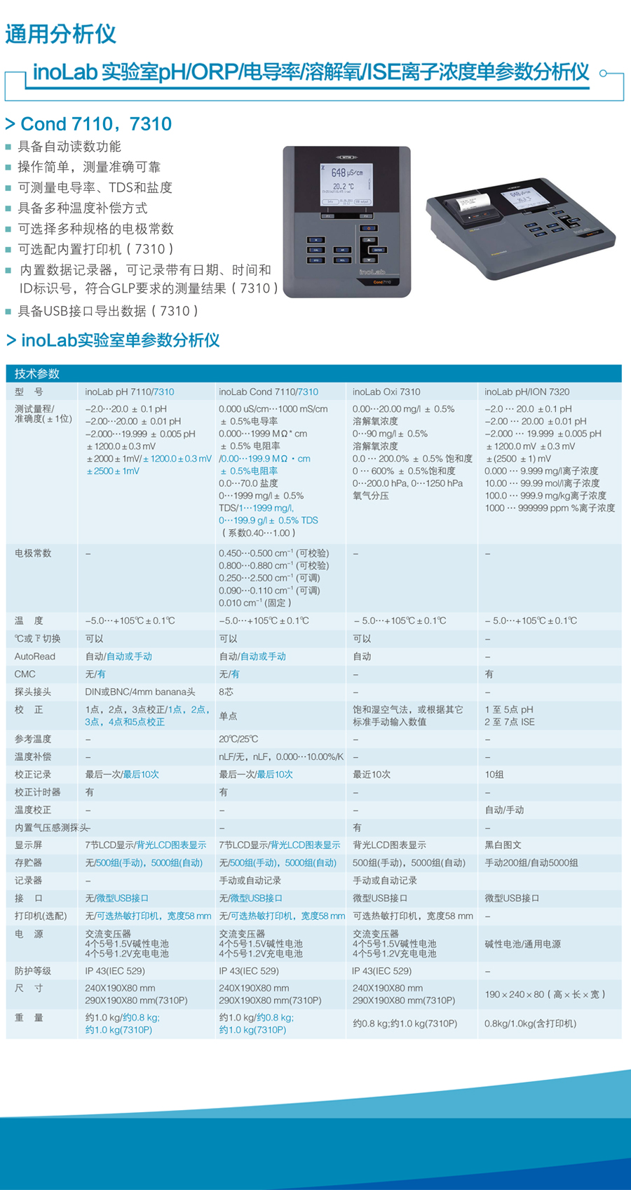 inoLab® Cond 7310 實(shí)驗(yàn)室精密電導(dǎo)率測(cè)定儀,僅主機(jī),含電源適配器,支架和操作手冊(cè),軟件和USB電纜 |
