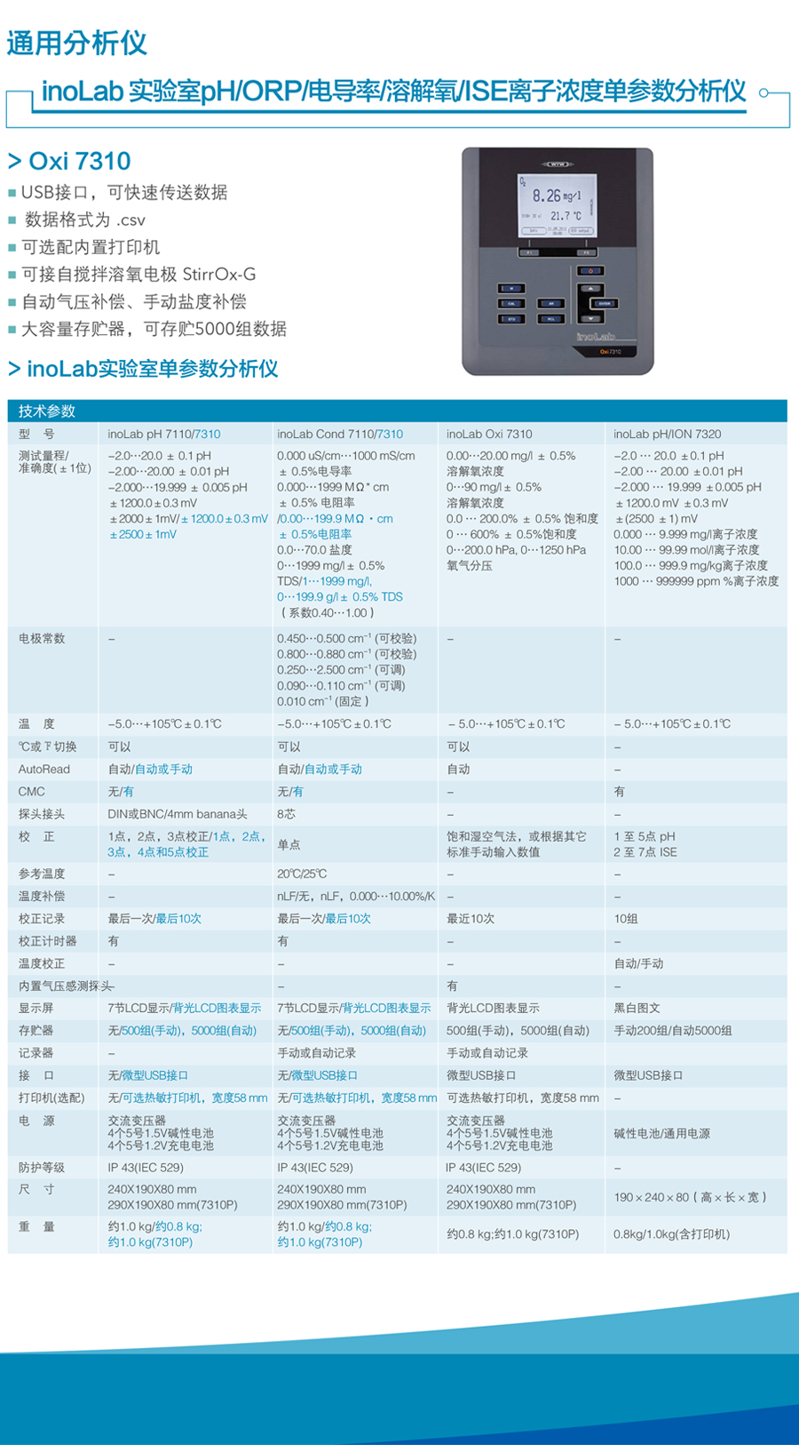 inoLab® Oxi 7310 實驗室專業(yè)溶解氧測定儀,僅主機(jī),含電源適配器,支架和操作手冊,軟件和USB電纜 |