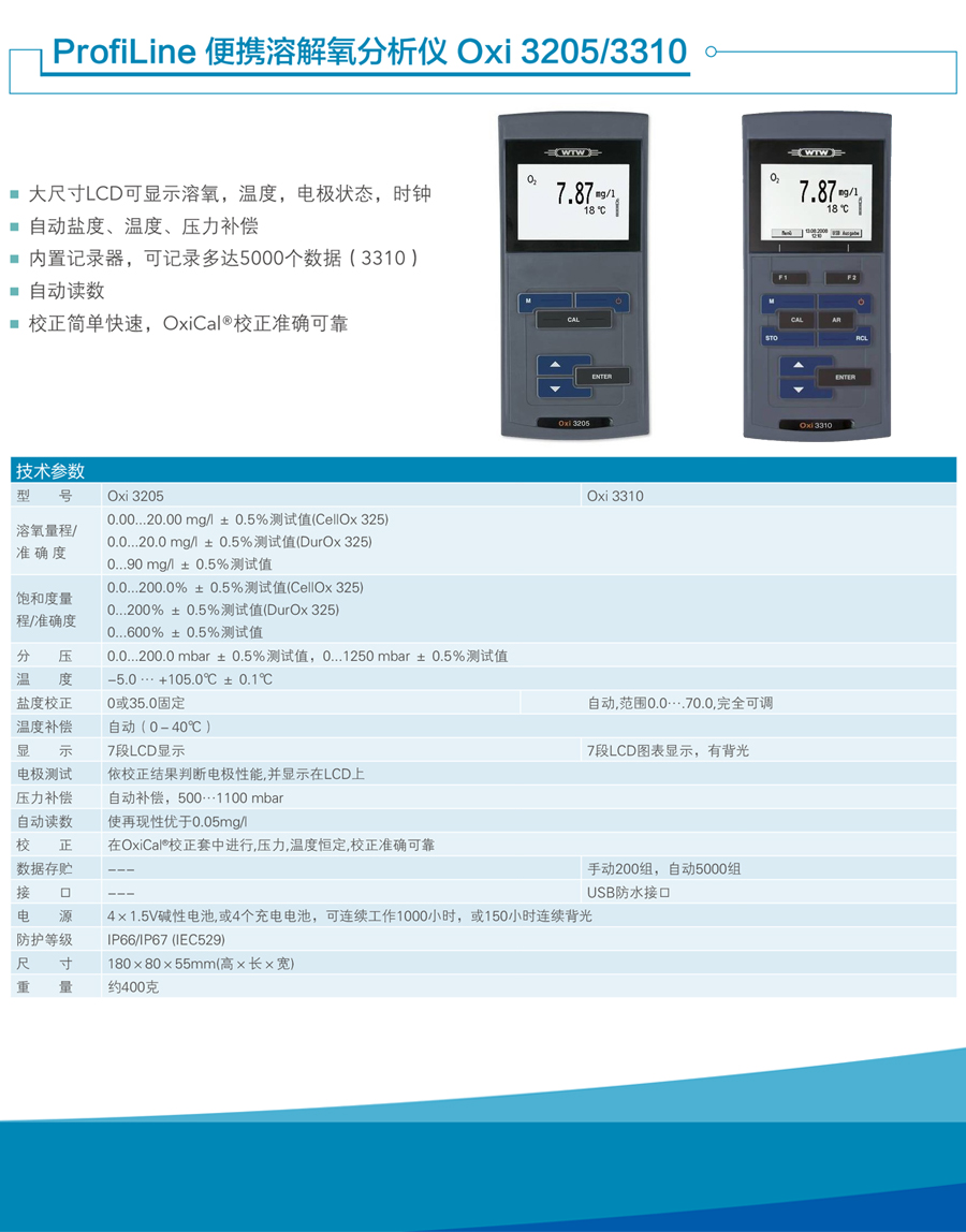 德國WTW Oxi 3310/3205/3210便攜式溶解氧檢測儀簡介