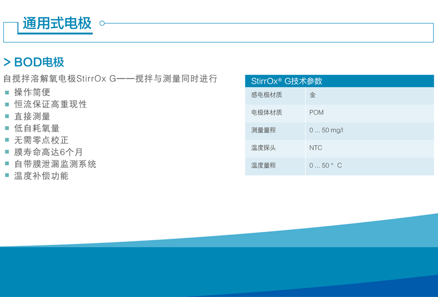 產(chǎn)品描述:德國WTW StirrOX G BOD溶解氧電極,自攪拌溶氧電極,不須極化等待;恒速測試;耗氧少 (0.008 μg/h);無零點電流;薄膜不容易破;適于測試BOD5........