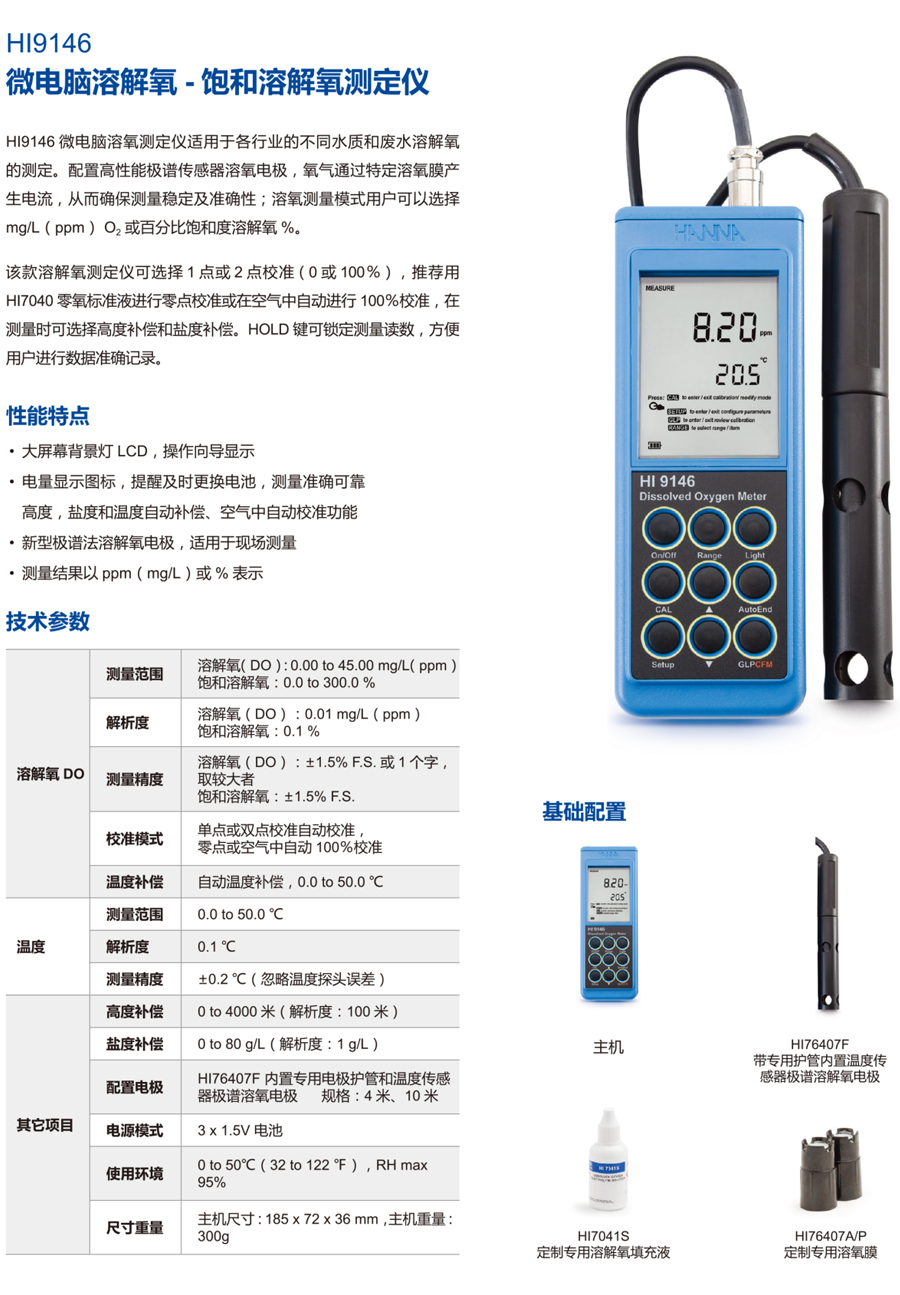 產(chǎn)品名稱:哈納 HI9146 便攜DO-溶解氧測(cè)定儀