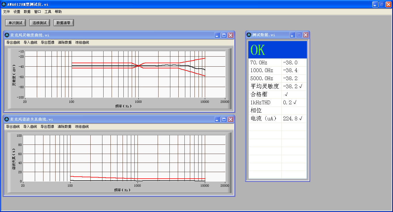 AWA6128M 型麥克風(fēng)測試儀執(zhí)行《GB/T 12060.4 聲系統(tǒng)設(shè)備傳聲器測量方法》和《IEC 60268-4:2004傳聲器》等標(biāo)準(zhǔn)。該儀器由專用測量分析電路, PC機和專用的分析軟件組成,功能強大,操作便捷。具有高效、強大的分析和處理能力。能快速地完成電聲產(chǎn)品麥克風(fēng)的測試,基于生產(chǎn)線和質(zhì)量控(QC)、操作簡易的要求而開發(fā)的測試系統(tǒng)。大大降低了電聲測試的成本,超越了傳統(tǒng)儀器的功能限制,可以廣泛應(yīng)用于生產(chǎn)線,實驗室等消費類電子的電聲測試領(lǐng)域。儀器可以同時測量麥克風(fēng)的靈敏度、電流、諧波失真等參數(shù)。根據(jù)設(shè)定的門限判斷麥克風(fēng)合格品或不合格品。測試結(jié)束后,簡潔直觀的顯示出 PASS/FAIL,極大的提高了測試效率。