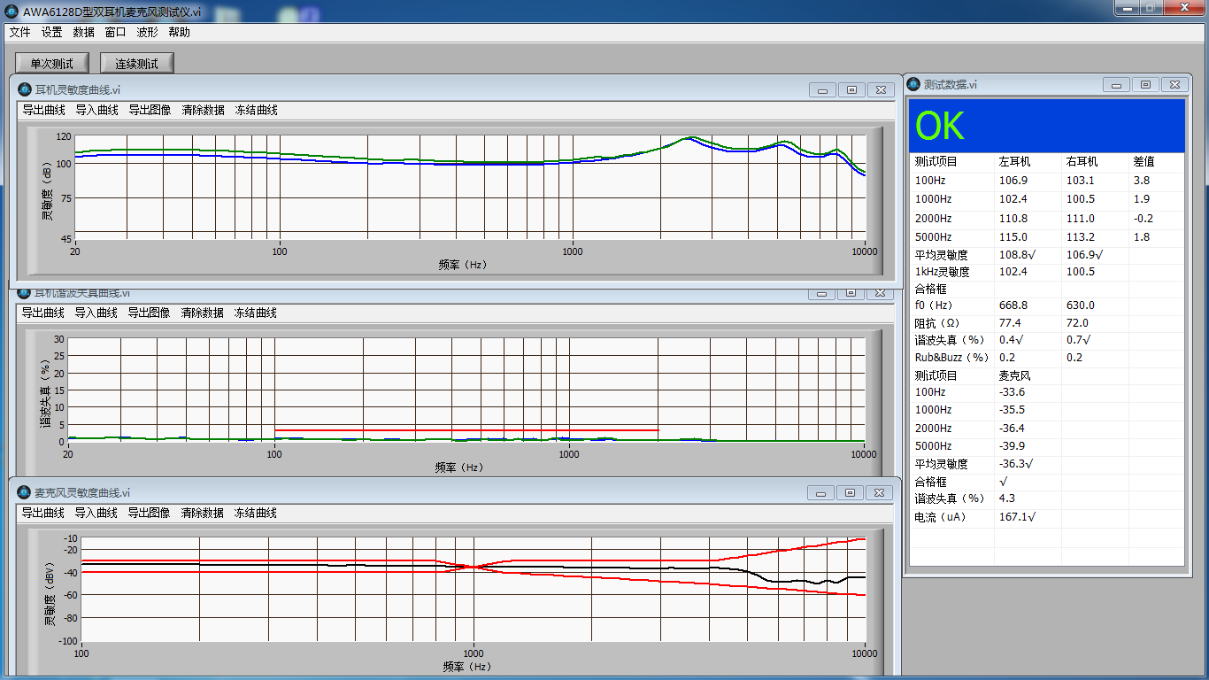 全中文的Windows界面,操作性更強(qiáng)。充分降低初期成本的投入和維護(hù)費(fèi)用,具有高效、強(qiáng)大的分析和處理能力。能快速地完成耳機(jī)麥克風(fēng)等電聲產(chǎn)品的測試,是基于生產(chǎn)線和質(zhì)量控制(QC)、操作簡易的 要求而開發(fā)的測試系統(tǒng)它將功率放大模塊,聲音測量模塊集成在一臺主機(jī)里,免去了用戶連線的煩惱。