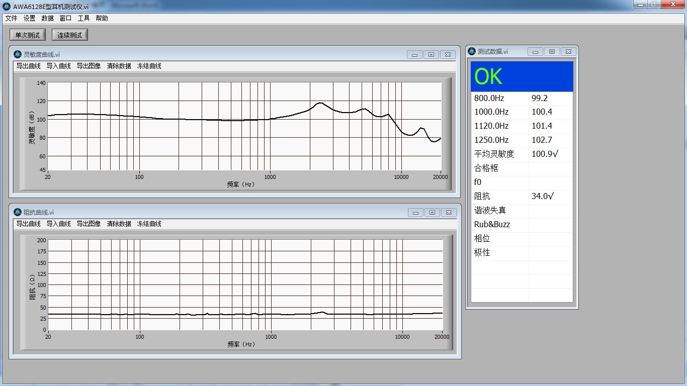 儀器可以同時(shí)測(cè)量耳機(jī)頻響、阻抗、諧波失真、異音、極性、相位和特性電壓等參數(shù)。根據(jù)設(shè)定的門(mén)限判斷耳機(jī)合格品或不合格品。測(cè)試結(jié)束后,簡(jiǎn)潔直觀的顯示出PASS/FAIL,極大的提高了測(cè)試效率。