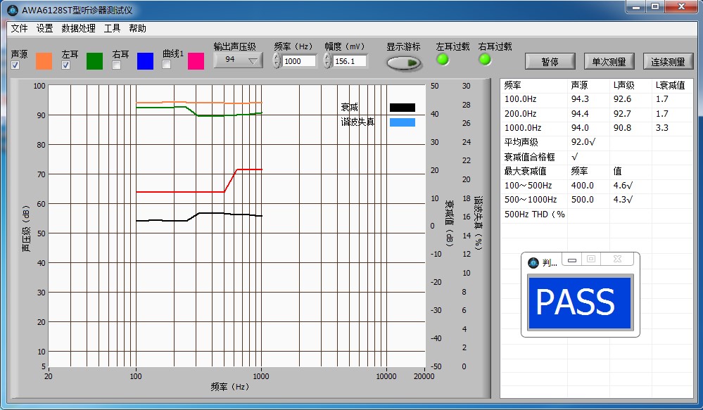 在設(shè)計(jì)、生產(chǎn)聽診器過(guò)程中,迫切需要一種能快速準(zhǔn)確地檢測(cè)出聽診器的傳聲特性的測(cè)量?jī)x器。AWA6128ST型聽診器測(cè)試儀在此背景下應(yīng)運(yùn)而生。AWA6128ST型聽診器測(cè)試儀執(zhí)行《YY 91035-1999 聽診器》和《YY 91077-1999聽診器傳聲特性測(cè)試方法》等標(biāo)準(zhǔn),專門用于聽診器傳聲特性測(cè)試。軟件能將測(cè)試聲源聲壓級(jí)、聽診器傳聲輸出聲壓級(jí)、兩者衰減值和合格框以曲線顯示,非常直觀。