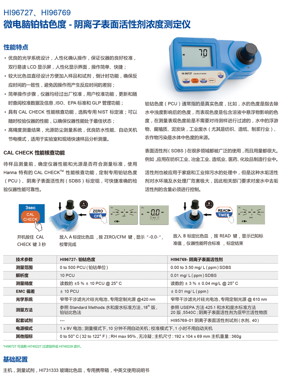 HI95769-03 定制專用陰離子表面活性劑【SDBS】試劑 預(yù)測(cè)次數(shù) 120次 |