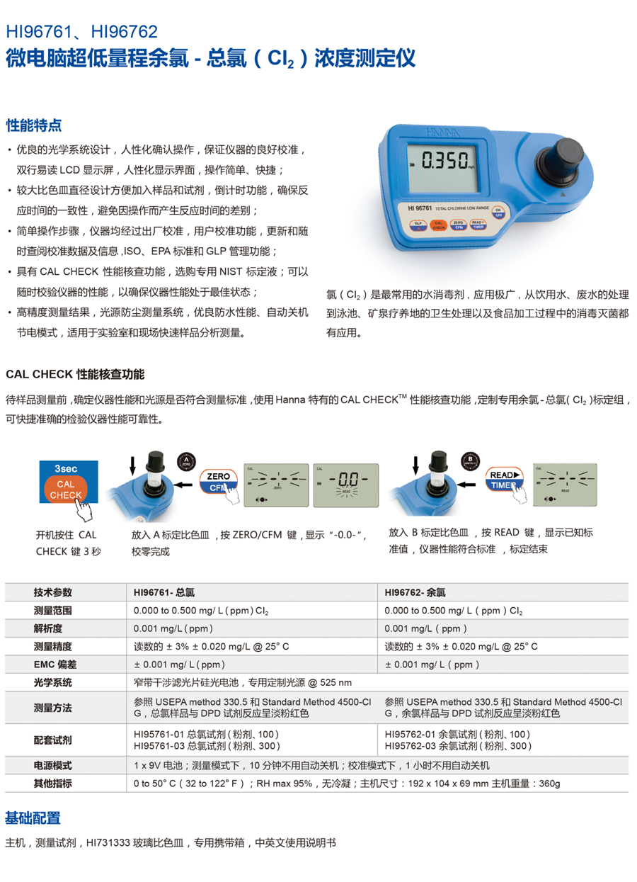 HI96762 余氯【游離氯】 |