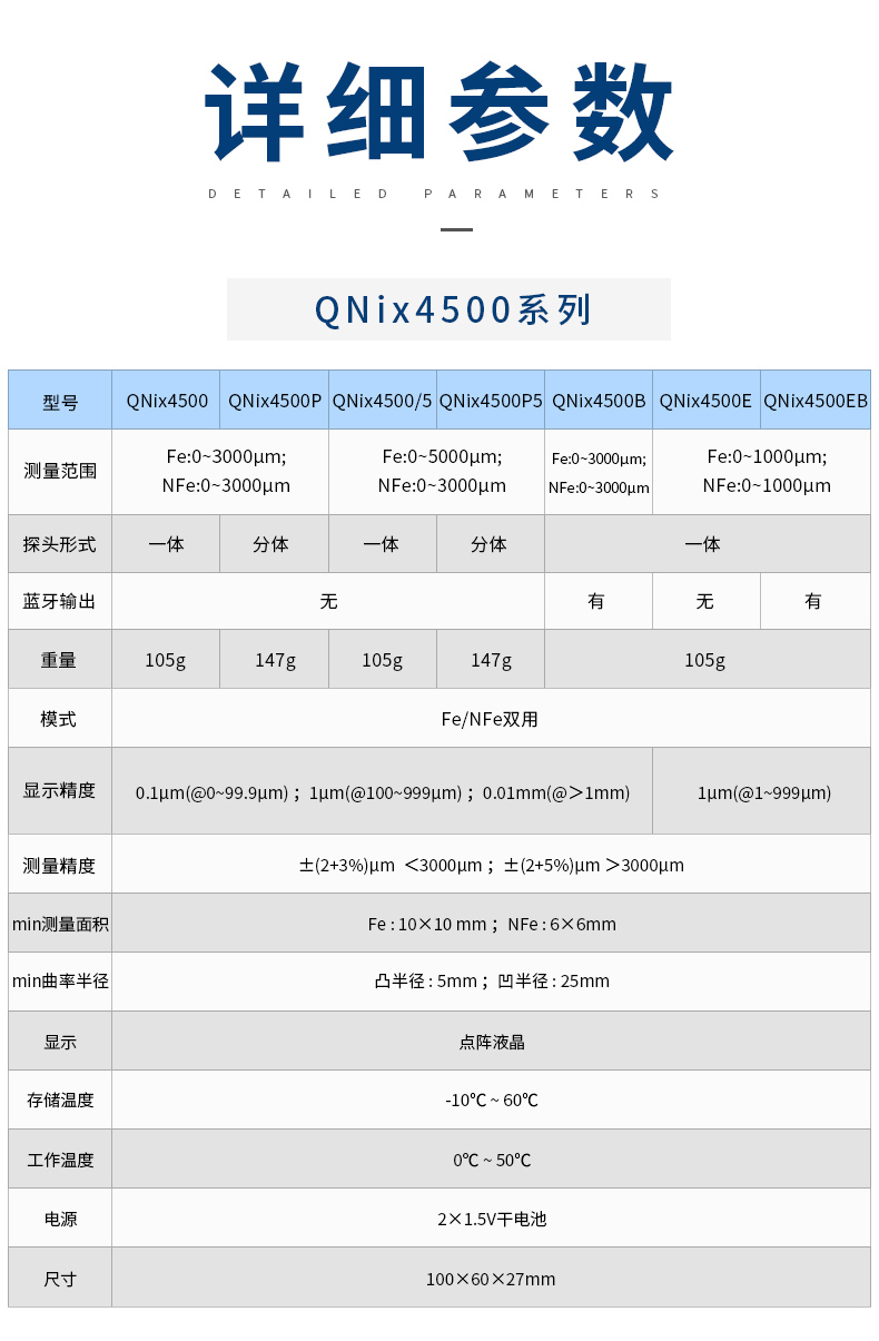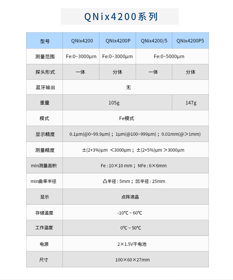 產(chǎn)品描述:QNix4200和QNix4500這兩種型號一體化/分體化設(shè)計,只需調(diào)零,無需校準(zhǔn),使用極其簡單。其中QNix4200為磁性測厚儀,可以用來測量鋼、鐵等磁性基體上的涂層、鍍層;QNix4500為磁性和渦流兩用測厚儀.........