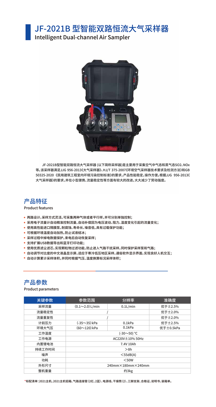 產(chǎn)品名稱(chēng):JF-2021B型智能雙路恒流大氣采樣器