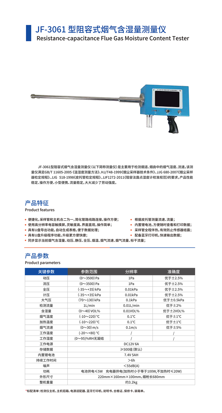 產品名稱:JF-3061型阻容式煙氣含濕量測量儀