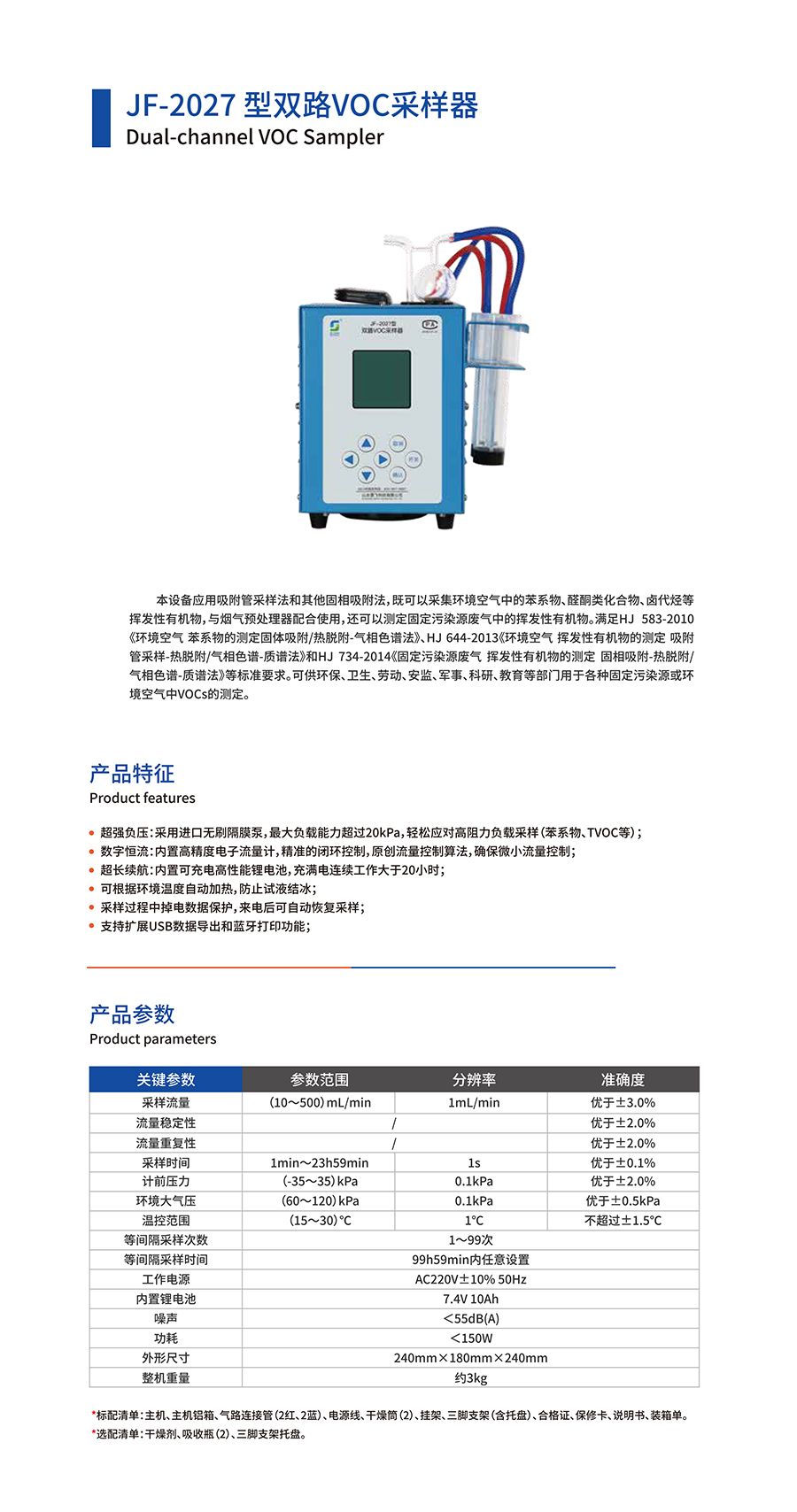 產(chǎn)品名稱:JF-2027型雙路VOC采樣器
