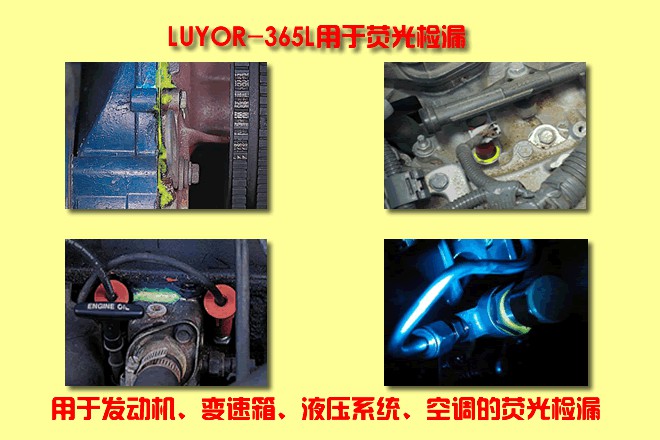 LUYOR-365L紫外線手電筒用于發(fā)動機(jī)、變速箱、液壓系統(tǒng)以及空調(diào)的熒光檢漏