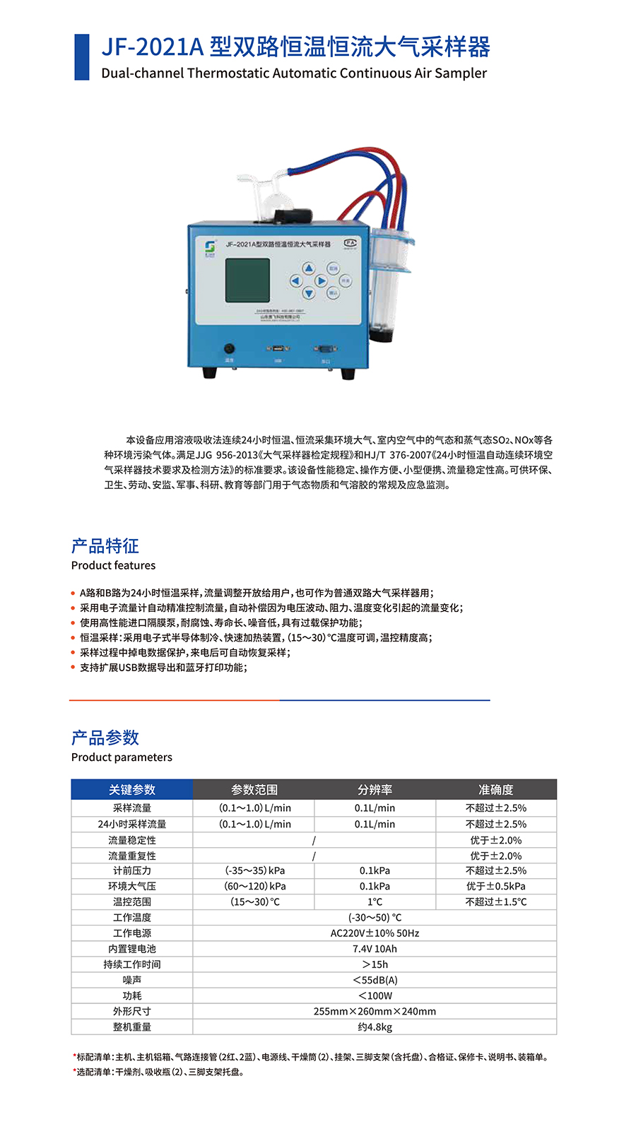 產(chǎn)品名稱:JF-2021A型雙路恒溫恒流大氣采樣器