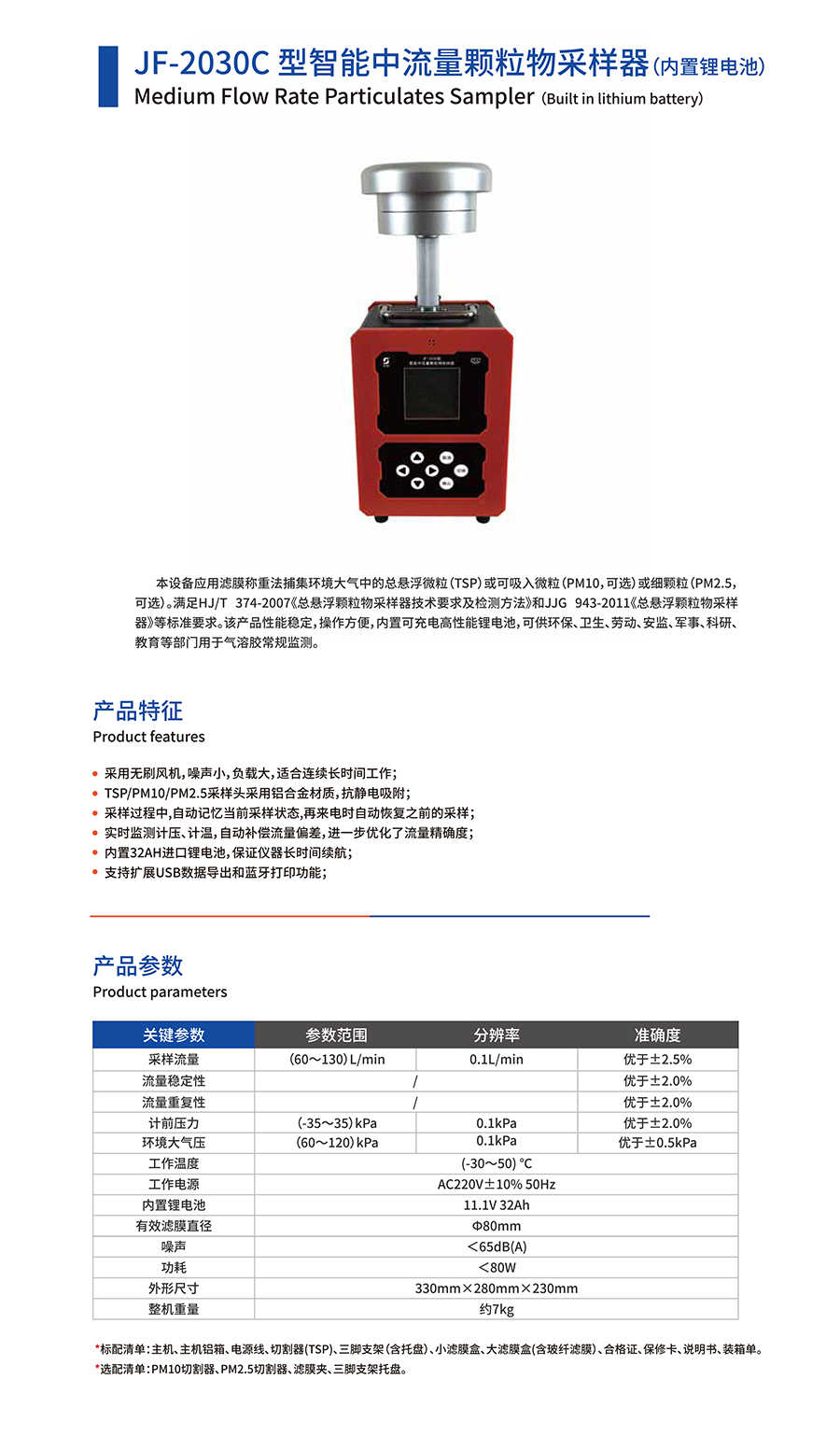 產品名稱:JF-2030C型智能中流量顆粒物采樣器(內置鋰電池)