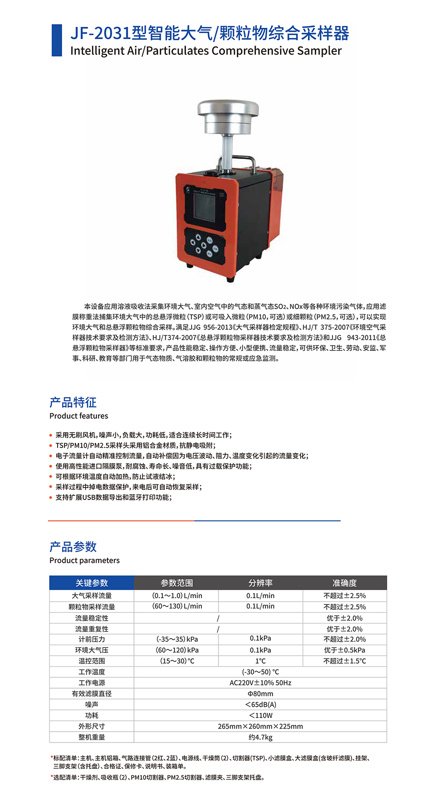 產(chǎn)品名稱:JF-2031型智能大氣/顆粒物綜合采樣器