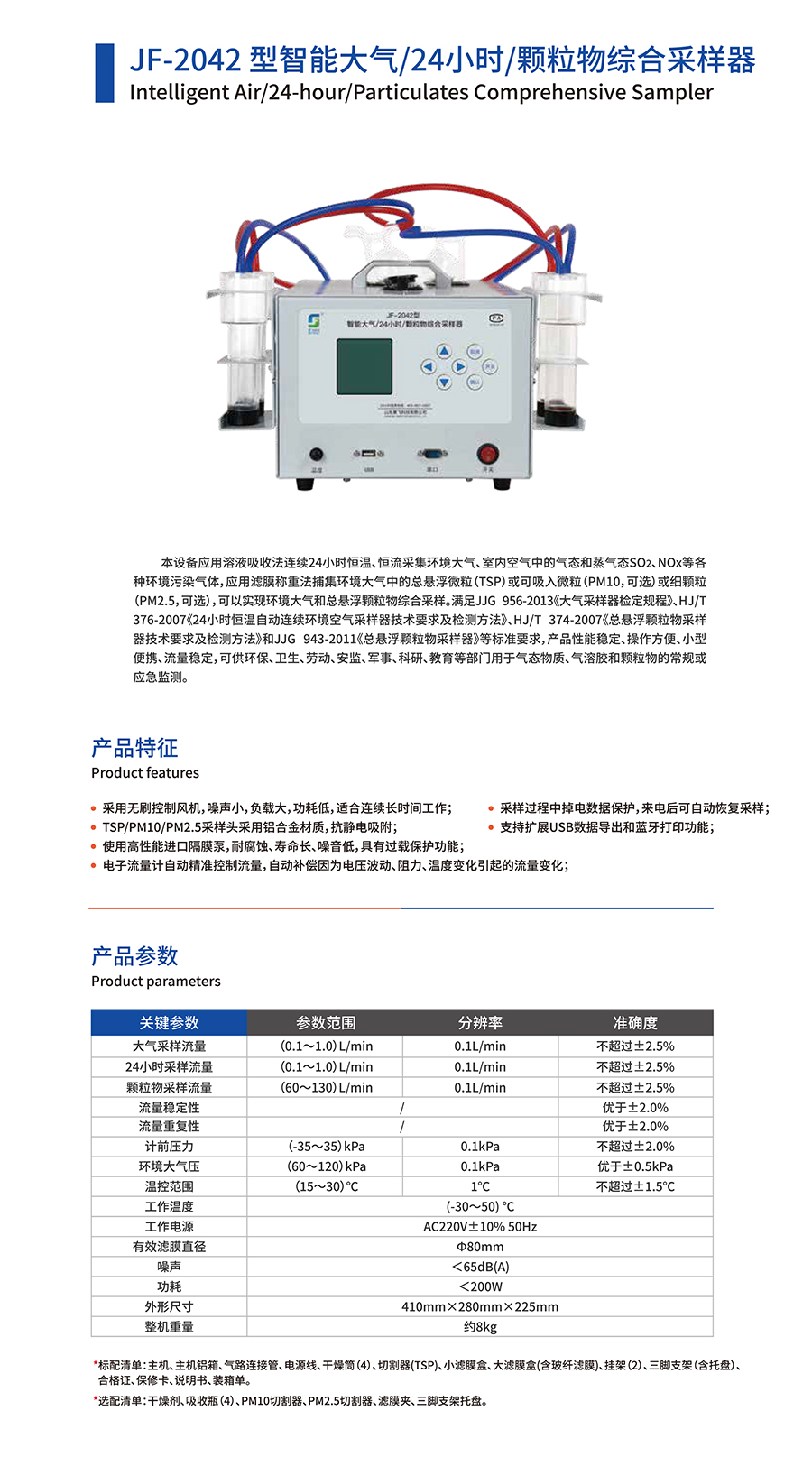 產(chǎn)品名稱:JF-2042型智能大氣/24小時/顆粒物綜合采樣器