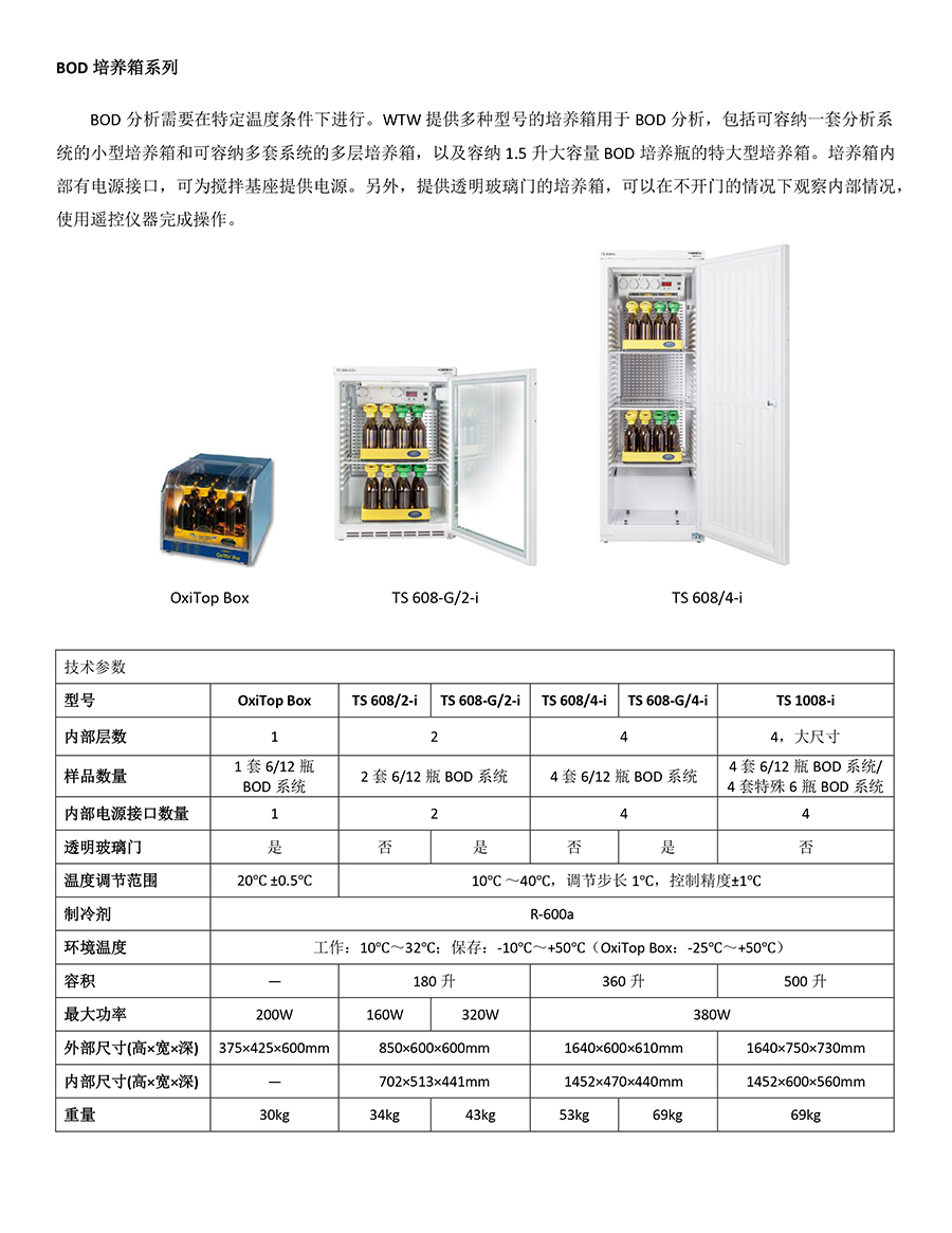 產(chǎn)品描述:BOD 分析需要在特定溫度條件下進行。WTW 提供多種型號的培養(yǎng)箱用于 BOD 分析,包括可容納一套分析系統(tǒng)的小型培養(yǎng)箱和可容納多套系統(tǒng)的多層培養(yǎng)箱,以及容納 1.5 升大容量 BOD 培養(yǎng)瓶的特大型培養(yǎng)箱......
